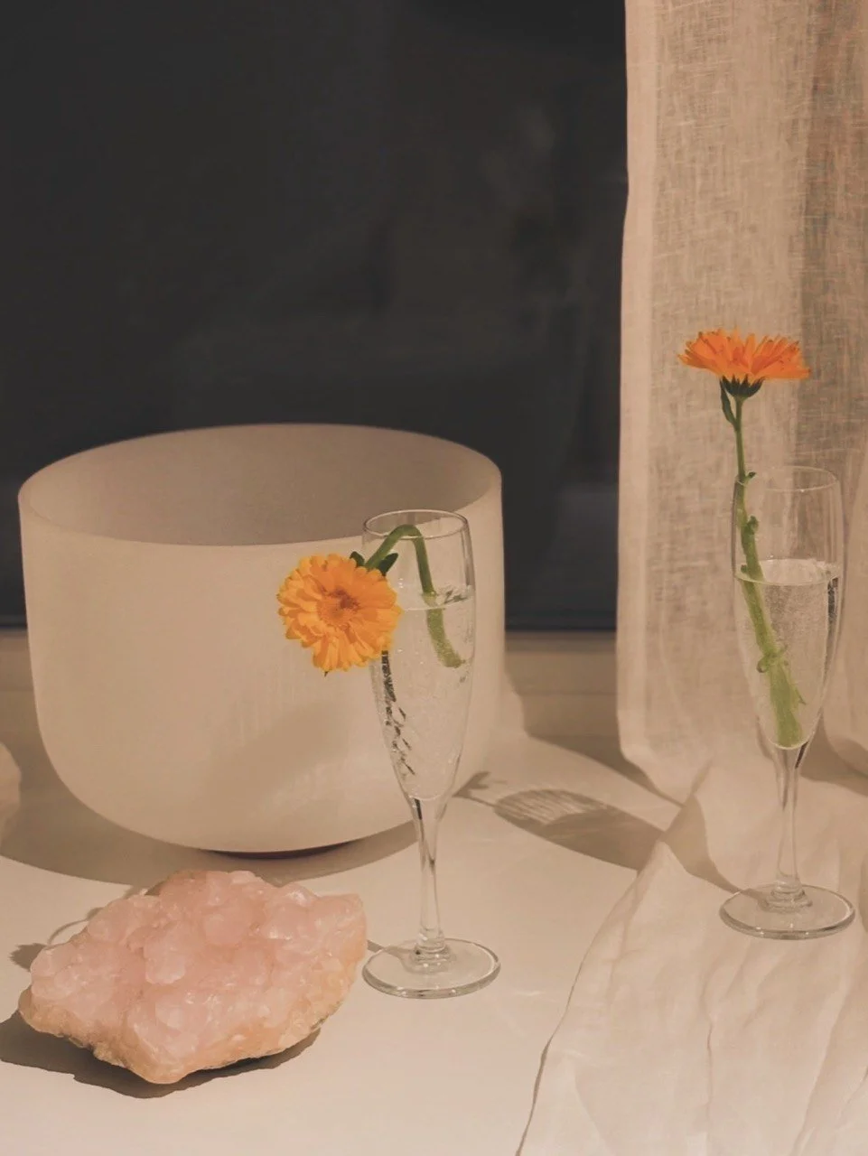 Rose Quarz, Calendula and Crystal Bowl.